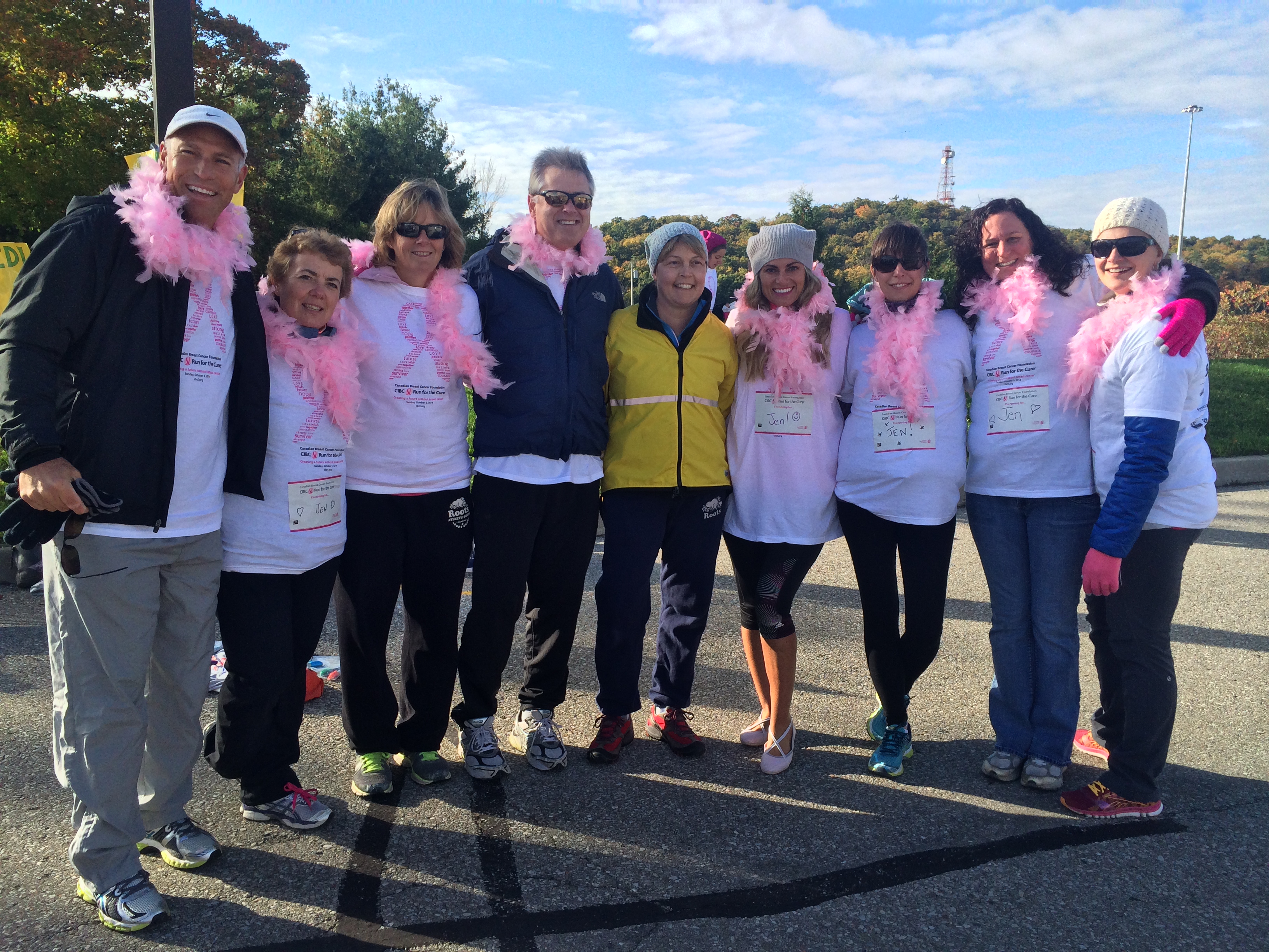 Friends and family out in pink to support Jen McTavish and acknowledge Breast Cancer Awareness month.
