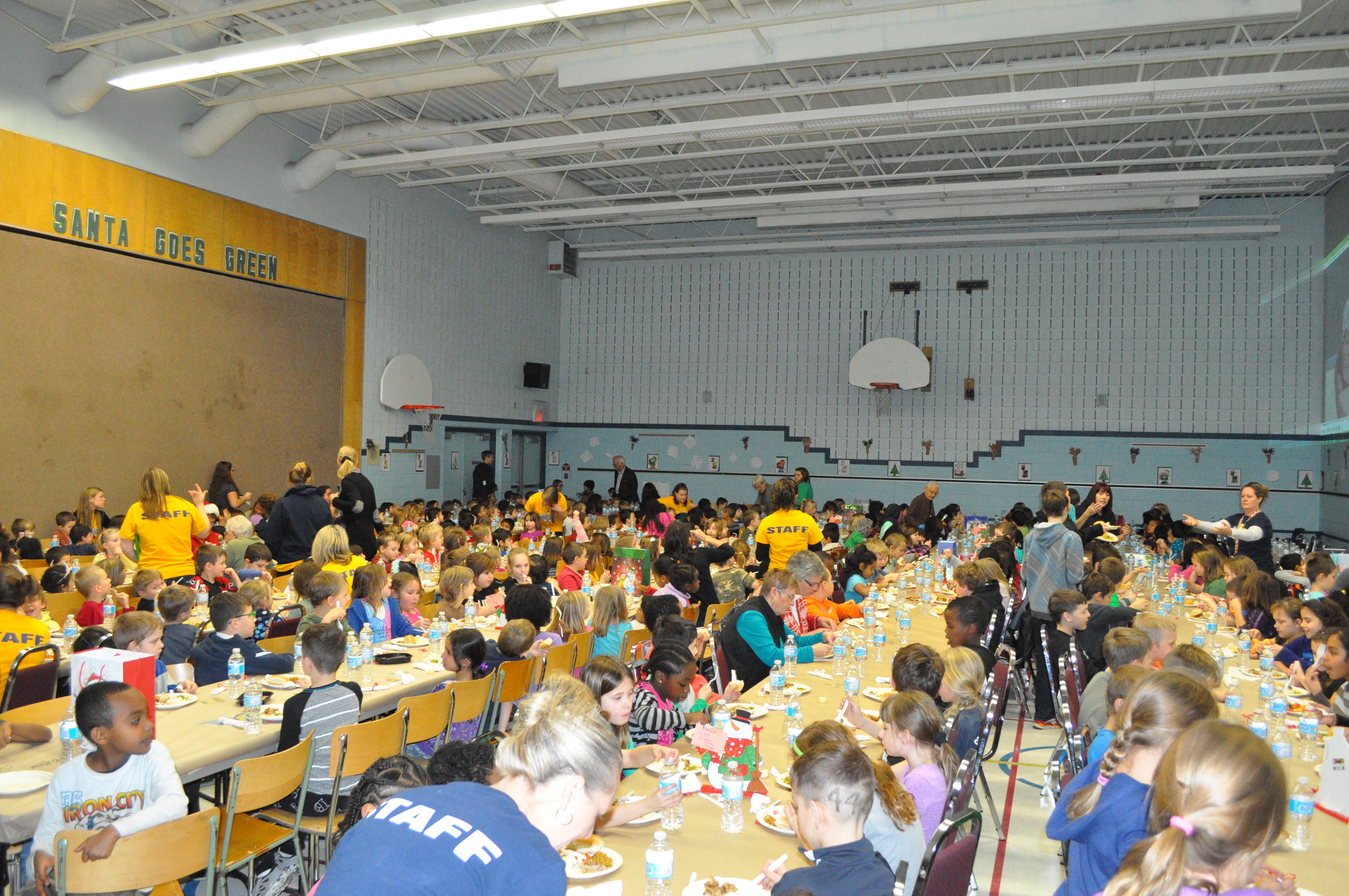 J.F. Carmichael Public School hosted their second annual festive lunch in December. Held in the gym, 500 students, staff and volunteers were able to eat together and experience a warm atmosphere of laughter and sharing.